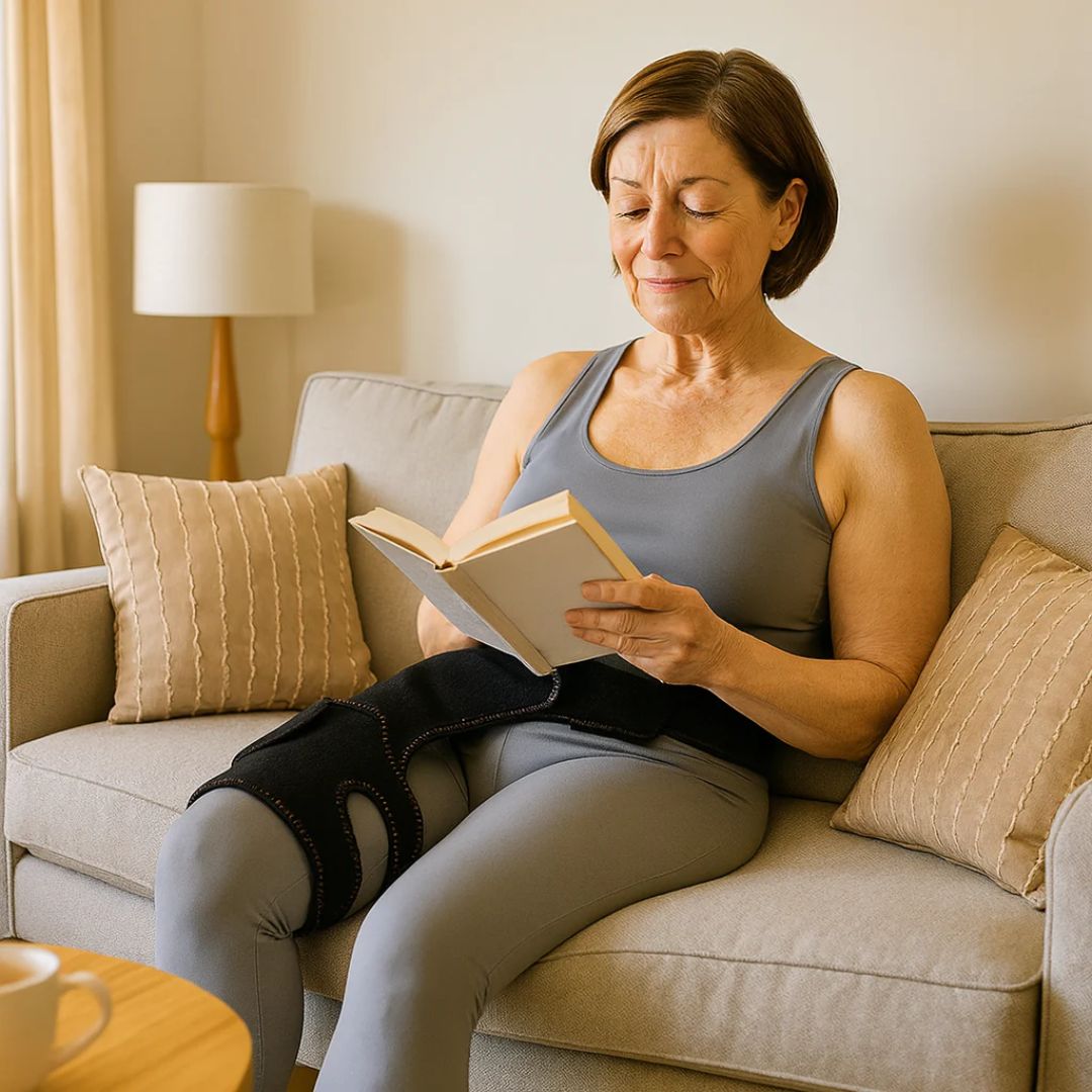 Legen Sie die Serenite Hüftbandage über Ihre Hüfte, stellen Sie die Gurte ein und entspannen Sie sich. Viele Frauen nutzen diese Zeit zum Ausruhen – zum Lesen, Musikhören oder einfach zum Entspannen.