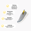 Das atmungsaktive Mesh-Material sorgt dafür, dass die Füße frisch bleiben, auch wenn man die Schuhe über längere Zeit trägt. Durch das Slip-On-Design lassen sie sich leicht an- und ausziehen. Besonders praktisch: Die breite Zehenbox bietet zusätzlichen Raum und verhindert ein eingeengtes Gefühl.